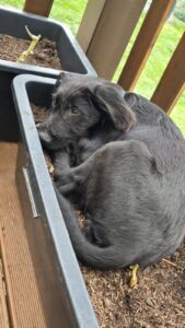 Ernie kam mit seiner Mama und seinen acht Geschwistern zu uns, als sie gerade mal einen Tag alt waren. Seine Mama Enya ist ein Labbimix, der Herr Papa allerdings unbekannt.